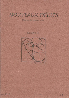 Le numéro 60 de Nouveaux Délits rassemble des textes de sept poètes, agrémentés par Cathy Garcia d’un court édito relatant la genèse (pas simple) de cet opus et d’une quatrième de couverture en forme d’extrait d’un essai sur la simplicité joyeuse et volontaire. Quand le politique s’en mêle, et bien tourné en plus... S’y ajoutent deux « résonances », notes de lecture aussi bien que jeux de miroir à l’écriture ciselée sur deux livres récents, également par la maîtresse des lieux, décidément productive et tellement amoureuse de la poésie que cet enthousiasme est particulièrement contagieux. Ah oui : de petites notes de bas de page, extraits de poèmes ou de romans, font aussi écho, comme des résonances, aux textes originaux publiés ; ces « délits d’(in)citation » confirment, s’il fallait encore la démontrer, la haute connaissance littéraire de Cathy Garcia, qui peaufine une revue franchement réussie tant sur la forme que sur le fond.
